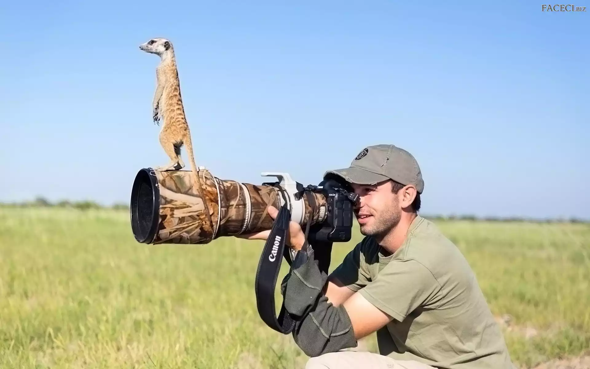 Łąka, Surykatka, Fotograf, Mężczyzna, Obiektyw - faceci.biz